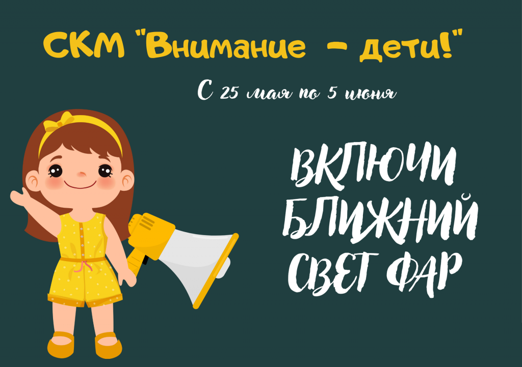 С 25 мая по 5 июня проводится специальное комплексное мероприятие «Внимание – дети!». В этот период водителям необходимо двигаться в светлое время суток с включенным на транспортном средстве ближним светом фар или дневными ходовыми огнями (при их наличии). За невыполнение этого требования – административная ответственность в виде штрафа до 3-х базовых величин или до 111 рублей (ч.3 ст.18.13 Кодекса об административных правонарушениях Республики Беларусь).